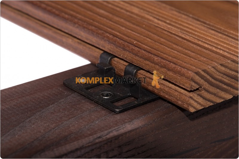 System mocujący do desek tarasowych wykonanych z Thermory thermo jesionu amerykańskiego przeznaczony do ukrytego montażu. Dzięki zastosowaniu wcięć w bokach desek można cieszyć się gładką powierzchnią tarasu bez widocznych wkrętów. Klip montażowy wykonany jest ze stali nierdzewnej.