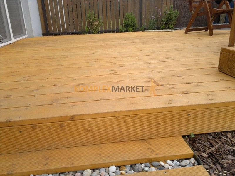 Komplex Market oferuje deski tarasowe świerkowe obustronnie drobnoryflowane w klasie jakości A/B.