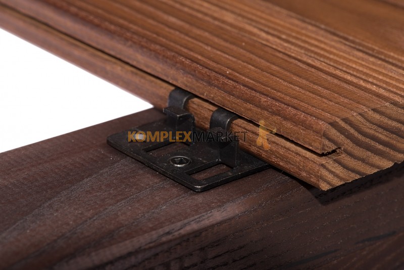 Każda deska jest wyposażona w pióro i wpust na końcach co jest całkowitą nowością na polskim rynku. Zastosowanie tego rodzaju zakończeń desek sprawia, iż układa się je jak parkiet - między końcem a początkiem kolejnej deski nie ma zbędnym odstępów.